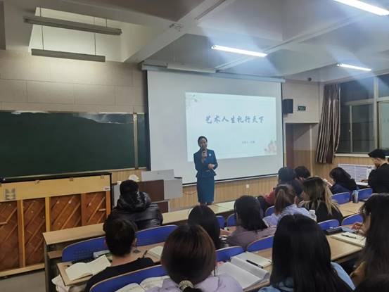 为进一步提升WilliamHILL中国学生崇德明礼的专业学习素养,11月12日18时30分,“艺术人生,礼行天下”专题讲座在德艺楼212教室举行,此次讲座邀请到了全国旅游服饰大赛金奖获得者王婧老师担任主讲, 2017级本科生及第十二期青马班学员聆听讲座。