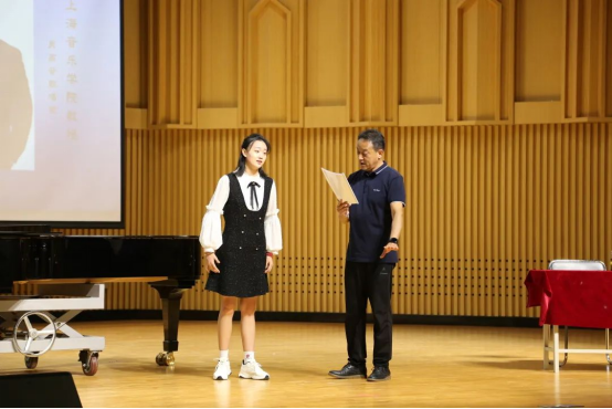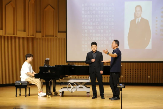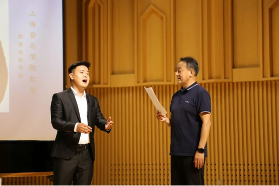 在一整天的课程中,赵老师生动有趣,干货满满的专家课,掌声不断、反响热烈!赵老师从学生在演唱中的气息、咬字、发音、演唱风格以及演唱的各个细节等方面进行细致、耐心的指导。将科学的发声概念与教学理念融会贯通地传达给师生,并通过示范教学,解答学生疑惑,分享个人学习经历与教学心得,让在场的师生受益匪浅,燃起对声乐学习更大的热情。