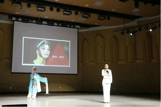银川市文化馆党春仙讲演的《秦韵声声绕梁细语丝丝入扣》。秦腔,别称“梆子腔”“陕西梆子”,秦腔表演朴实、豪放,富有夸张性,生活气息浓厚。