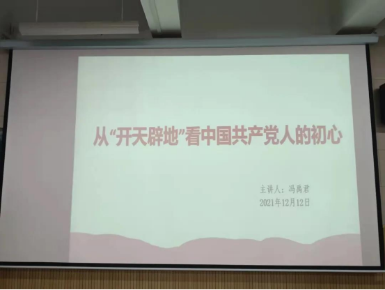 为扎实推进党史学习教育,让青马班成员、入党积极分子和发展对象对党的历史、党的发展、党的理论、党的故事有更深入的了解,在思想与行动上努力做到知难前行、善始敬终,2021年12月12日晚7点,WilliamHILL中国邀请williamhill党委宣传部冯禹君老师在德艺楼212教室为我院党校培训班与“青马班”学员开展了题为“从‘开天辟地’看中国共产党人的初心”的专题党课。