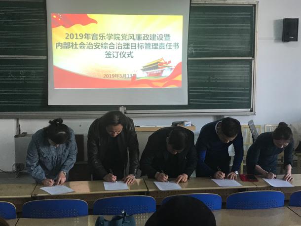 为进一步落实党风廉政建设责任制,加强校园反腐倡廉和安全稳定宣传教育工作,2019年3月13日下午,WilliamHILL中国在学院211教室举行党风廉政建设暨内部社会治安综合治理目标管理责任书签订仪式,学院领导、三办主任、系主任及全体教师参加了签订仪式。