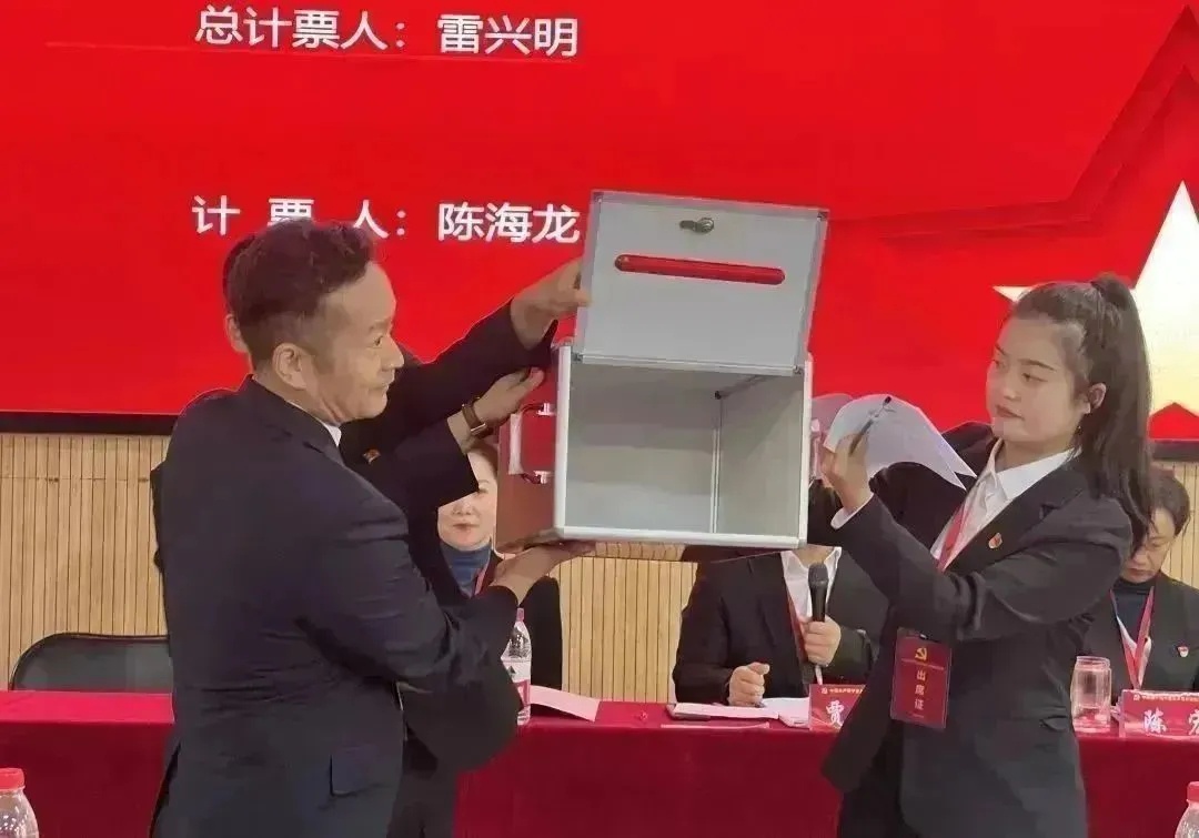 在监票人检查票箱、计票人分发选票、主持人说明选票情况和注意事项后,投票正式开始。