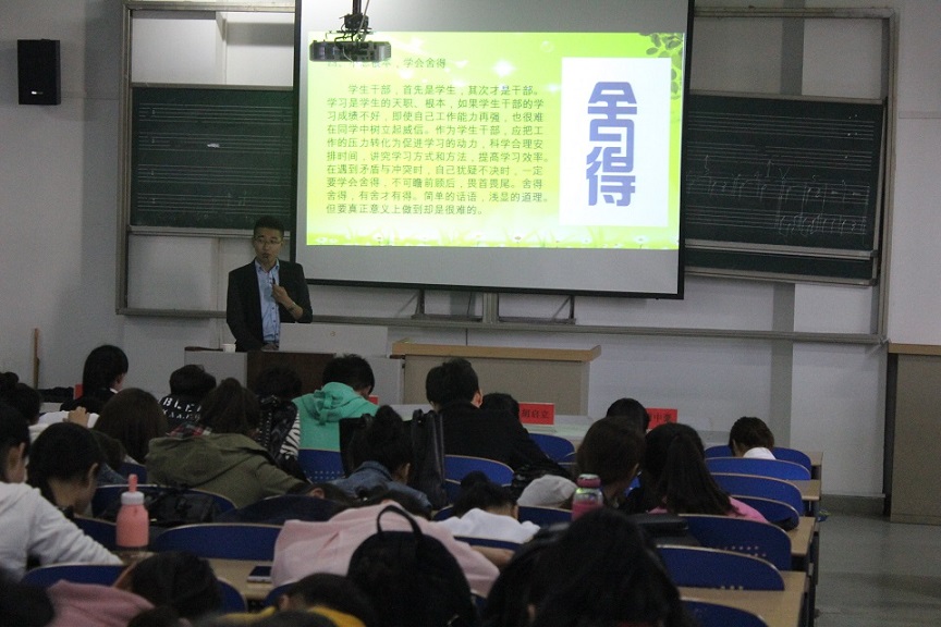 首先,学生会主席周中豪先后介绍两位优秀学子的优秀事迹,并以热烈掌声欢迎两位学子的到来。接着,由物电学院黄达发表了名为《学生干部的那些事》的演讲,他对他大学三年生活以来对自己的生活方式及作为学生干部的经历做了详细介绍,并和同学们做了互动交流。交流内容围绕作为学生干部应该怎么做,提出了一些处理班级问题的办法。他说,大学最美好的回忆就是担任学生干部的这些时光。在欢乐与忧伤的交织下,幸福与压力同在,汗水与泪水共流。