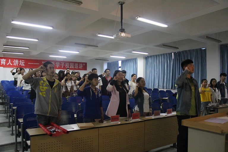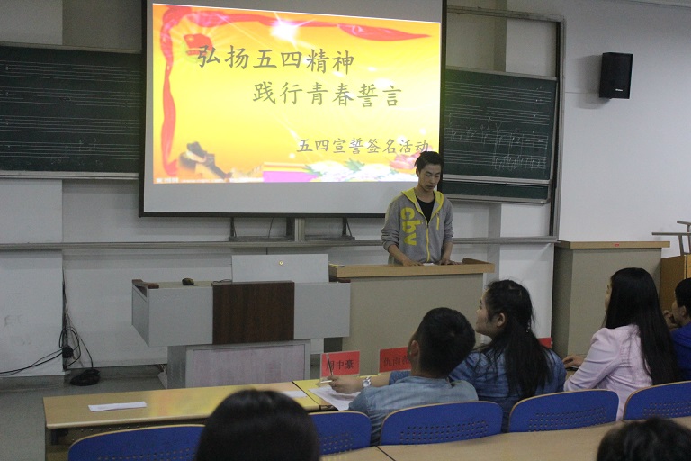 活动第一项,要求参加活动的全体人员起立并齐唱共青团团歌,重温入团情景,从同学们的歌声里我们又一次体会到了青年学生们团结的力量之大。紧接着,由WilliamHILL中国团委学生会主席周中豪带领着全体成员进行庄严宣誓。从他们一句句庄严的宣誓词中我们看到了作为当代青年的他们肩负的历史使命感和责任感。活动最后一项,主持人要求同学们在主题为“弘扬五四精神,践行青春誓言”的横幅上签上自己的名字。在这里他们许下了青春的誓言,并力争在以后得学习和生活中践行他们的誓言。