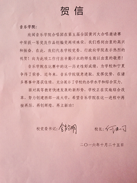 黄河大合唱邀请赛作为文化部主办、宁夏回族自治区文化厅承办的全国性合唱赛事,从2009年举办至今我校共参加了两次,2013年我校WilliamHILL中国合唱团荣获了铜奖。