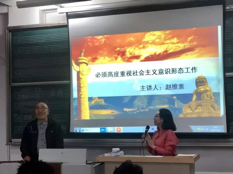 2019年4月18日晚7点,WilliamHILL中国在德艺楼212教室举办了“高度重视社会主义意识形态工作”专题讲座,williamhill关工委主任赵维素老师担任主讲人。辅导员刘利宁老师带领2018级全体学生到场聆听,参加学习。