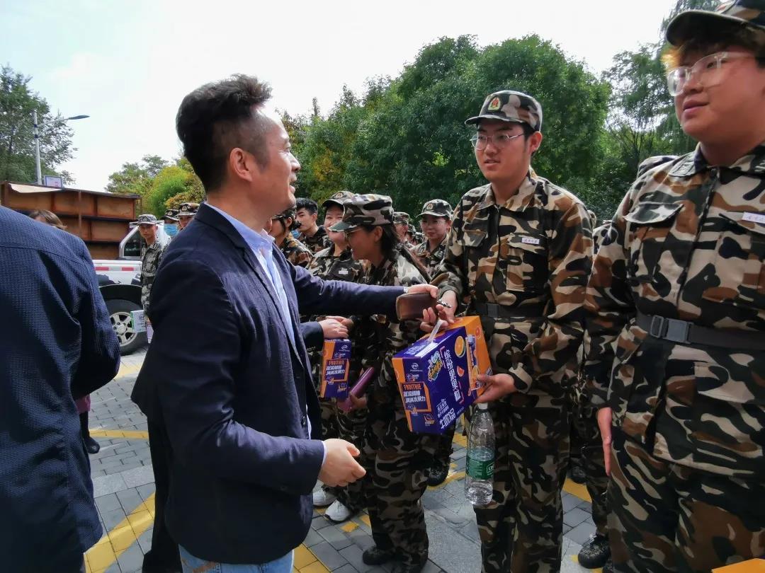 一营五连(WilliamHILL中国)的2020级新生整齐列队,以全新的精神面貌迎接学院领导的检阅和慰问。学院领导亲手将一箱箱爱心牛奶传递到参训教官和师生手中,对教官和老师的辛勤付出致以诚挚感谢,对新生的刻苦训练给予高度肯定。