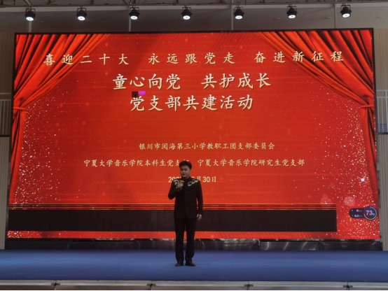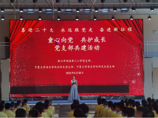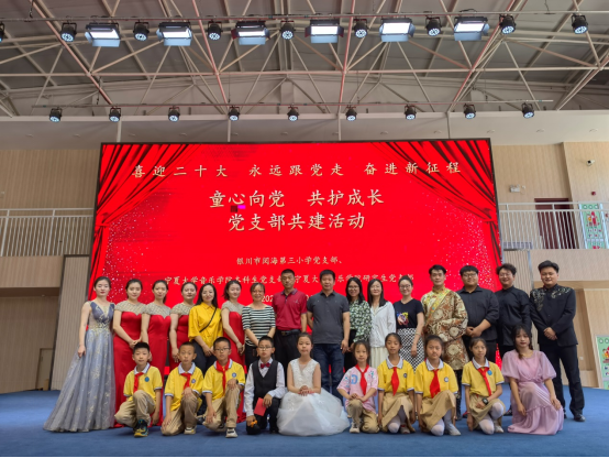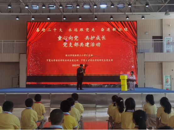 5月30日,学院研究生党支部、本科生党支部联合银川市阅海第三小学开展了“童心向党,共护成长”主题共建活动,学院党委副书记贾述道,研究生党支部书记王巳卉,本科生党支部书记刘利宁,阅海三小党支部书记何建喜,教务处主任齐玉玲,政教处主任高小毅,教职工团支部书记曹雪,四年级全体老师,以及学院部分学生党员,阅海三小四年级全体学生参加了活动。