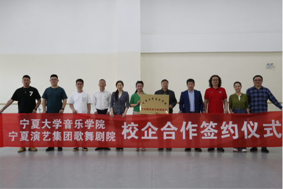 为深入贯彻落实《williamhill书记校长访企拓岗促就业专项行动实施方案》,进一步切实做好2022届毕业生就业工作,5月20日上午,在学院院长雷兴明的带领下,学院党委副书记贾述道、舞蹈系主任金晖、学生工作办公室主任王巳卉、学院办公室姚永昊一行来到宁夏演艺集团歌舞剧院,举行校企合作签约授牌仪式暨艺术教育人才培养座谈会。宁夏演艺集团副总经理、歌舞剧院党支部书记、院长陈丽云,歌舞剧院副院长惠勇,歌舞剧院党支部副书记石宏谋等人参加了本次签约仪式暨座谈会。
