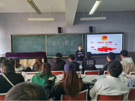活动伊始,团支书首先播放了纪录片《信仰的感召—青年楷模恽代英》通过纪录片,同学们了解到,恽代英出生于一个传统的书香门第,青年时代起便意识到要把改造自我与改造社会紧紧联系在一起,并立下为祖国和社会服务的大志。他认为,青年人不但要认真学习科学文化知识,成为饱学之士,还应该有强烈的社会责任感和道义感,把学习和救国的事业紧密结合起来。他说过:“我身上没有一件值钱的东西,只有一副近视眼镜值几个钱。我身上的磷,仅能做四盒洋火。我愿我的磷发出更多的热和光,我希望他燃烧起来,烧掉过老的中国,诞生一个新中国。”而如今,我们追忆历史,缅怀先辈,不仅仅是要感悟恽代英的一言一行,更重要的是,要将其作为明镜,比照自身。接着,团支书说到,习近平总书记曾说:“未来属于青年,希望寄予青年。”青年的成长与追求,离不开天下兴亡、匹夫有责的责任感,离不开无惧牺牲、敢于献身的使命感,离不开奋勇争先、不甘人后的荣誉感。一百多年前,觉醒的青年一代以明智,以热血,在黑暗中发出一声惊天动地的呐喊,让禁锢于两千多年封建社会中的饱受列强欺凌的中国人彻底觉醒。由青年学生发起的爱国运动—五四运动,迅速成为工人、农民、社会各阶层参与的爱国救国运动。在这一场运动中,青年学生接受了马克思主义。青年学生获得了茁壮成长。他们以共同的信仰,组成了一个伟大光荣的政党——中国共产党,从此中国革命翻开了新的一页,中国的面貌焕然一新。此后,一代代青年在我们党的带领下,心系家国、勇立时代潮头,把自己的命运与国家和民族的命运紧紧联系在一起。