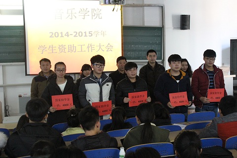 会上,鱼彬首先宣读了2015年国家助学金获得者名单,胡启立宣读了国家励志奖学金、国家奖学金获得者学生名单。紧接着,由国家助学金获得者代表邓煜璇和国家励志奖学金获得者代表王淑雅同学分别做了交流发言,同学们以自身家庭情况出发,谈了受助的感受,并代表全体学生对学校、学院辛勤服务工作的老师表示了感谢。接着,大会为国家助学金一档获得者、二档获得者代表以及国家励志奖学金获得者代表分别颁发了奖状。