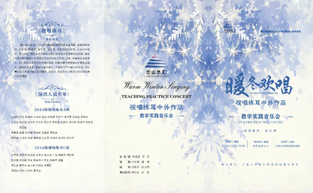 这不仅是一场课程成果的集中汇报,更是学子们以音乐为语言,传递感知、绽放才华的青春舞台。音符如暖流,声部织就诗意,这个冬天,让我们以音乐抚慰心灵,共赴一场温暖而美好的相遇。