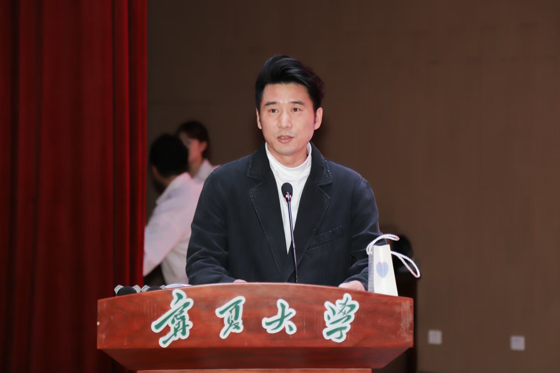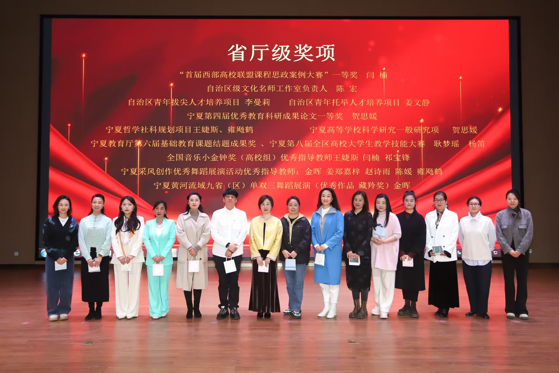 在WilliamHILL中国表彰会上,党总支书记贾述道以《塞上深耕笃行处,艺苑春种秋收时》为题发表演讲。他首先向获奖师生表示热烈祝贺,并感谢全体师生为学院发展做出的贡献。