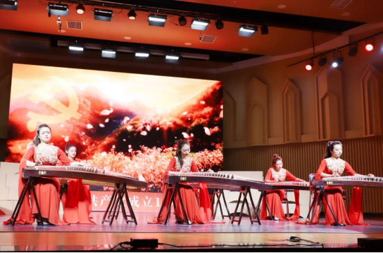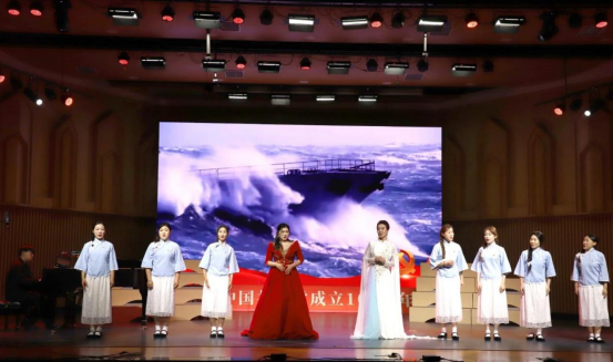 党课中的珍贵历史影像重现了中国共产党带领中国人民筚路蓝缕、艰苦奋斗,实现中华民族从站起来、富起来到强起来伟大飞跃的恢宏历史画卷。混声合唱、女声合唱、独唱、古筝重奏、萨克斯管五重奏、三重唱、情景表演唱等,集党的理论、党史知识、音乐知识、经典鉴赏为一体,呈现了一场动人心弦的红色文化盛宴。从《南湖的船,党的摇篮》的初心宣誓,到《红军阿哥你慢慢走》的军民鱼水情;从《保卫黄河》《英雄赞歌》的保家卫国气概,到《在希望的田野上》《春天的故事》的改革开放新篇;从《七子之歌》港澳回归祖国怀抱的喜悦,到《灯火里的中国》的盛世景象,每一个音符都诠释着中国共产党“为中国人民谋幸福、为中华民族谋复兴”的铮铮誓言和灼灼践行,展现了“看万山红遍”的中国共产党人百年精神谱系。当《不忘初心》的旋律缓缓落幕,这场以党史为墨、音乐为笔的生动党课在热烈的掌声中圆满收官。