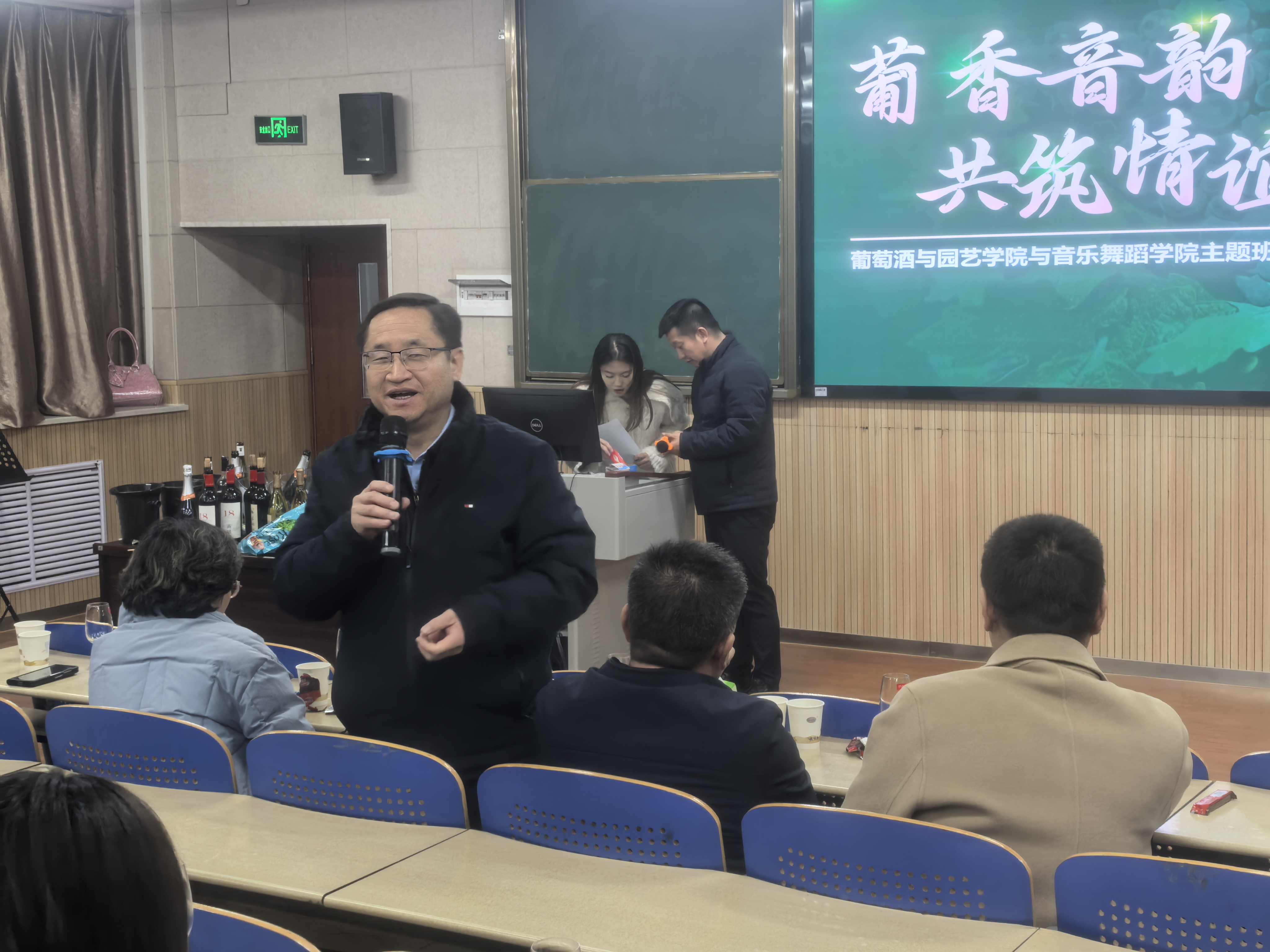 为深入贯彻落实立德树人根本任务,推动领导干部“七进一交友”活动走深走实,2025年12月15日晚,学校党委副书记张桓、纪委书记马元等校院两级领导深入学生班级,参加了由音乐舞蹈学院2024级音乐学专业(1)班与葡萄酒与园艺学院2024级葡萄与葡萄酒工程专业(中外合作办学)联合举办的“葡香音韵,共筑情谊”主题班会。此次活动旨在以专业特色为纽带,促进葡萄酒文化与音乐艺术对话,拓展学生视野,加强学院交流,探索跨学科育人新路径。