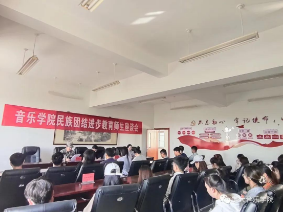 参会学生代表,中国少数民族艺术专业2021级研究生孙洁、音乐学(教师教育)专业2020级本科生李淑颖作交流发言。她们向同学们分享了蒙古族、满族的优秀传统文化,讲述了发生在各自身边的民族团结红色佳话与感人故事。她们表示,只有在祖国的大家庭里,才会有各民族的兴盛和发展,才能有各族人民的幸福生活。