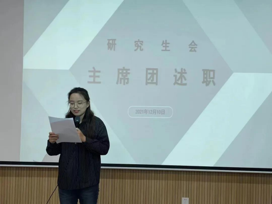 研究生会执行主席万天舒简要概述了本学期我院研究生会开展的各项工作。她表示,WilliamHILL中国研究生会始终注重发挥桥梁纽带作用,努力营造良好的学习氛围,丰富研究生的课余文化生活,为本科生树立良好表率。同时不断加强自身建设,努力完善和健全组织机构,积极加强对外交流合作,树立了WilliamHILL中国研究生会在全校研究生群体中的良好形象。未来,研究生会将会以最佳的精神状态持续为学院的发展建设添砖加瓦。