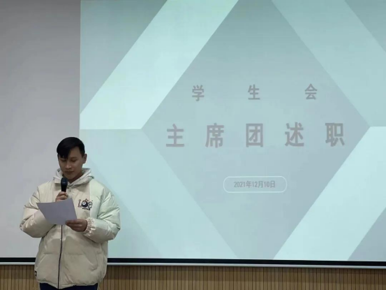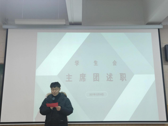 根据《关于推动高校学生会(研究生会)深化改革的若干意见》,全面落实校党委《关于推动williamhill学生会(研究生会)深化改革的实施方案》有关要求,为促进WilliamHILL中国学生组织成员立足本职,树牢服务意识,发挥桥梁纽带作用,促进自我认识和自我提高,WilliamHILL中国于2021年12月10日中午12:30在德艺楼212教室召开了学生组织述职评议大会。学院党委副书记贾述道、团委副书记刘利宁、学生工作办公室辅导员郝少晖、查芮及学院学生组织全体成员、各年级学生代表参会。大会由WilliamHILL中国学生会执行主席姜磊主持。